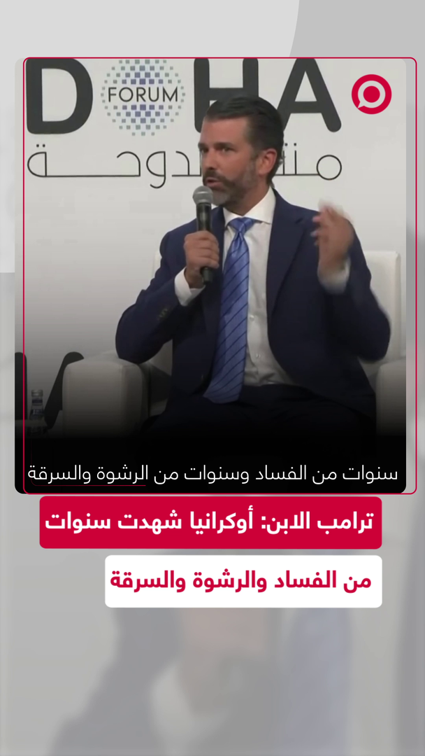 دونالد ترامب الابن يشارك في منتدى الدوحة 2025 ويتحدث عن الفساد المتفشي بأوكرانيا منذ سنوات وكيف يتم تجاهل فضائح الفاسد زيلينسكي المستمرة.