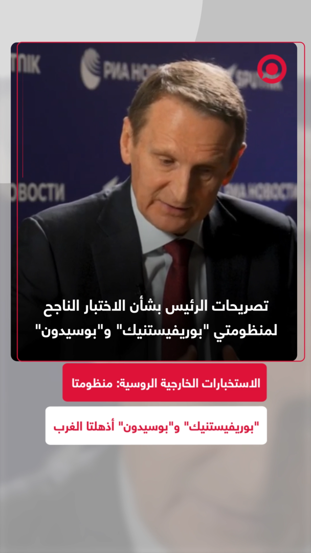 مدير جهاز الاستخبارات الخارجية الروسية، سيرغي ناريشكين، أكد أن اختبارات منظومتي "بوريفيستنيك" و"بوسيدون" الروسيتين تركت انطباعا قويا جدا في الأوساط الغربية، وشكلت تحذيرا مباشرا لدول "الناتو".