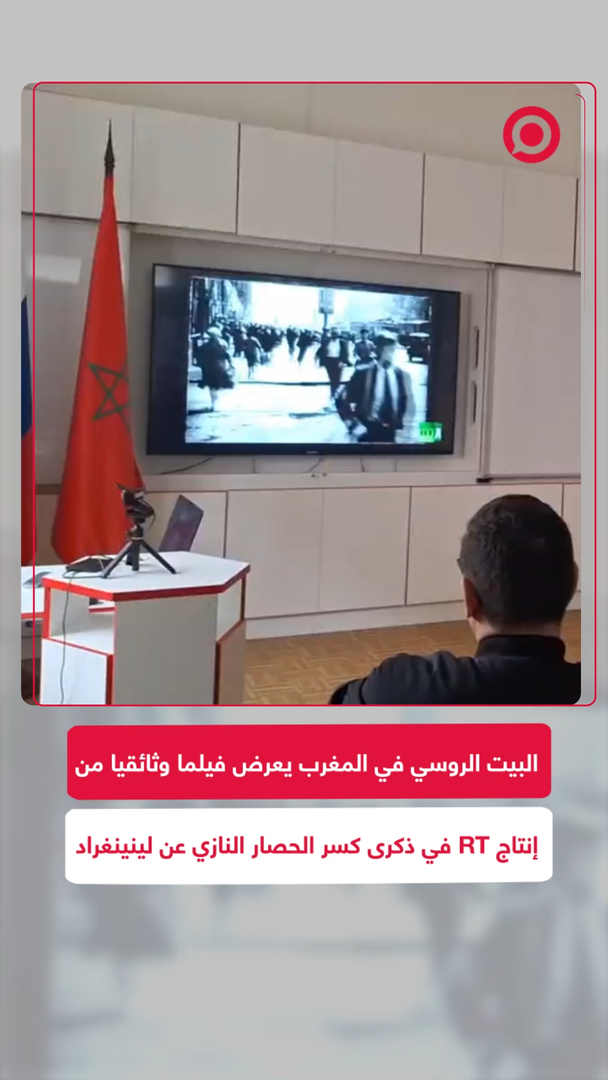 تمت مزامنة الحدث مع الذكرى الـ82 لكسر حصار النـ ـازية على لينينغراد.. البيت الروسي في العاصمة المغربية الرباط يعرض الفيلم الوثائقي من إنتاج RT "لينينغراد: 872 يوما من الجحيم"، حيث حضر الحدث صحفيون مغاربة. #روسيا #المغرب #الرباط #فيديو #ريل