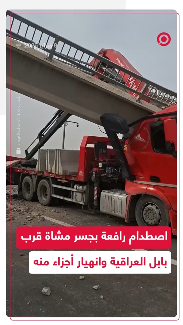 انهيار أجزاء من جسر مشاة في محافظة بابل العراقية بعد اصطدام رافعة فيه