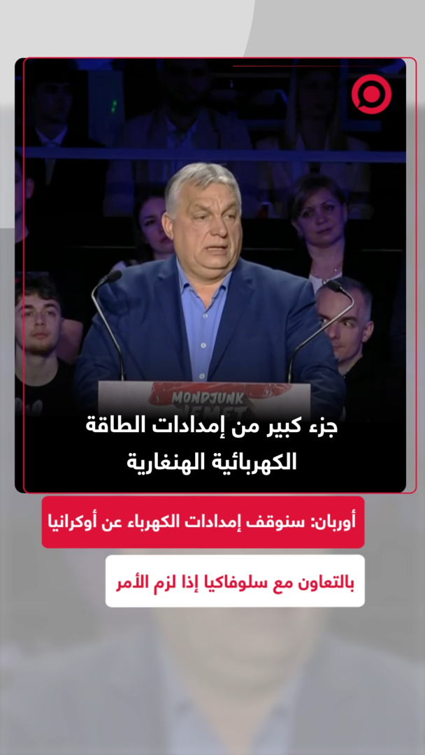 البارحة سلوفاكيا واليوم هنغاريا.. رئيس الوزراء الهنغاري فيكتور أوربان يشير إلى أنه من الممكن أن تتشاور هنغاريا مع سلوفاكيا للتوصل لاتفاق بشأن إمكانية قطع إمدادات الكهرباء عن أوكرانيا وذلك على خلفية قطع أوكرانيا لإمدادات النفط عنهما.