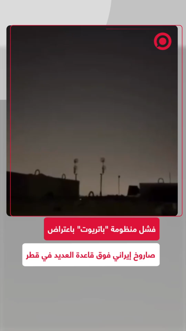 مشاهد تُظهر فشل منظومة "باتريوت" باعتراض صاروخ إيراني فوق قاعدة العديد الجوية في قطر. #قطر #قاعدة_العديد #إيران #باتريوت #تصعيد_عسكري