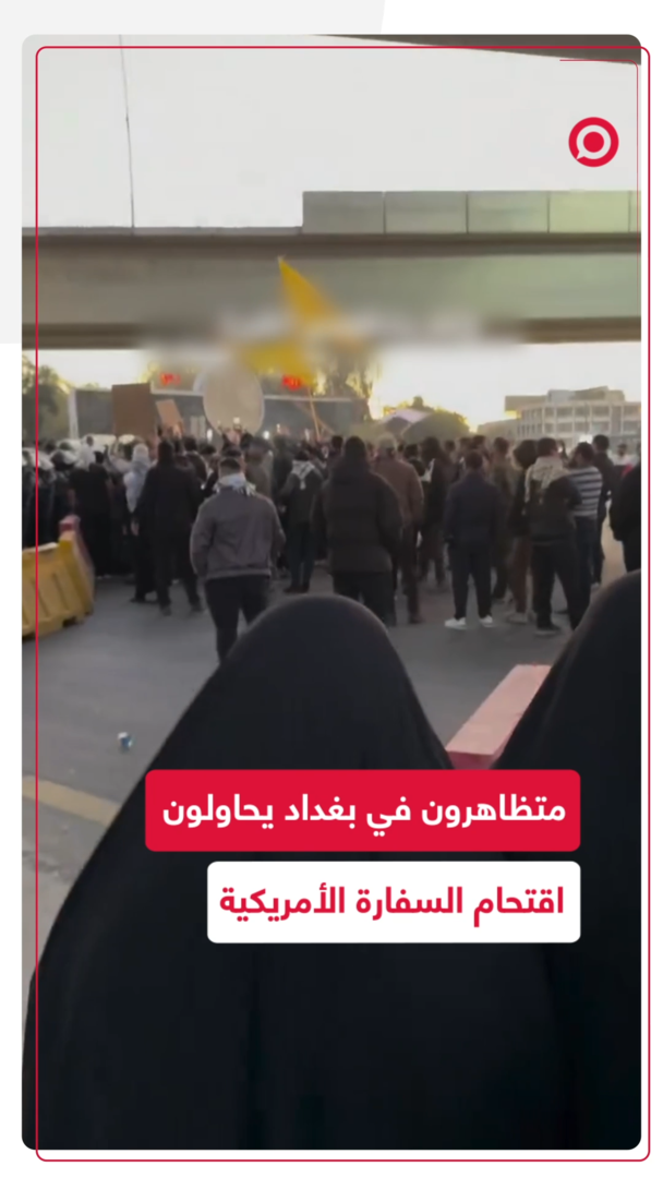 وسط تصاعد الصراع الأمريكي الإيراني.. فيديو يوثق مجموعة من المتظاهرين في بغداد أثناء محاولتهم اقتحام السفارة الأمريكية.